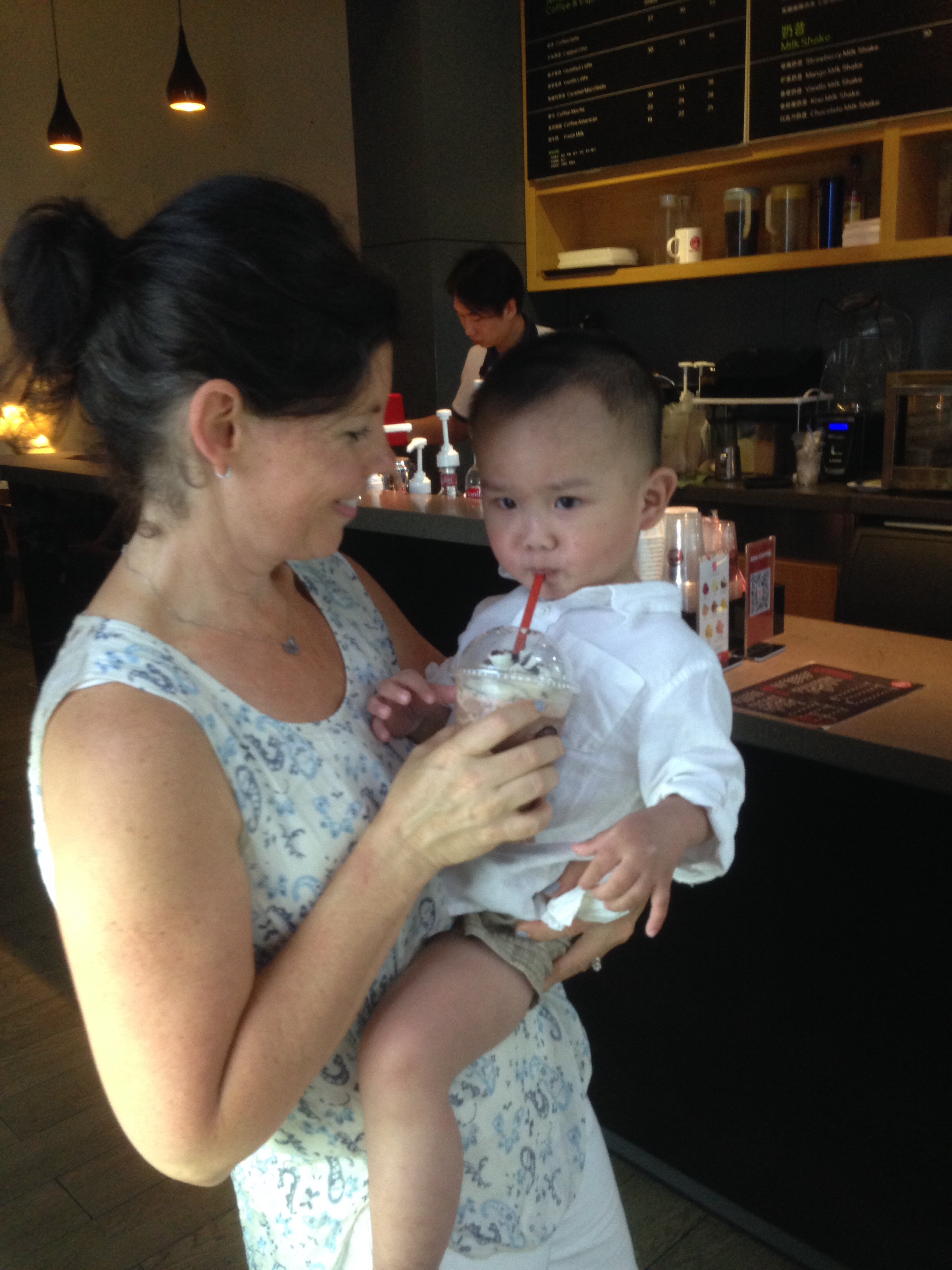 This is a nurse blowing Theodore kisses as she tries to get him to stop crying.  It worked for a few seconds at a time. We have been given melon on a stick, candy, yogurt drinks, candy, stuffed animals, candy, balloons, candy, toys, candy, cookies, fruit I do not know the name of, and did I mention candy from the Chinese people to help stop him from crying since our first day with this love.