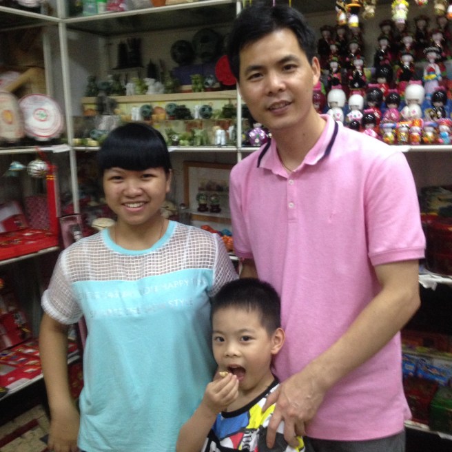 This is a store owner for Jenny’s. We had a great time getting to know him and his son and store worker.   Be sure to shop here if you are ever on Shamian Island.