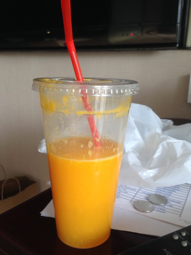 Theodore hasn’t wanted to drink hardly at all, but he has taken to freshly squeezed juice.  Go figure- the boy sure has good taste.  I’ll need to get our juicer cranking when we get home.