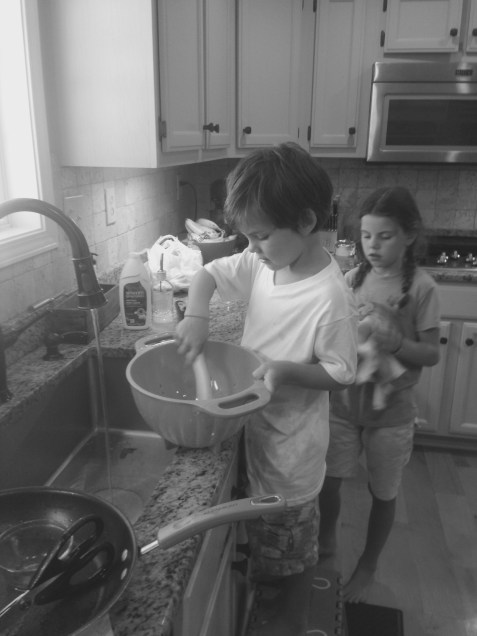 And look who else is “helping” with the dishes……
