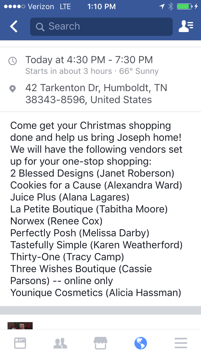 About 10 Vendors will be there so you can do some Christmas shopping and help bring Joseph home at the same time!