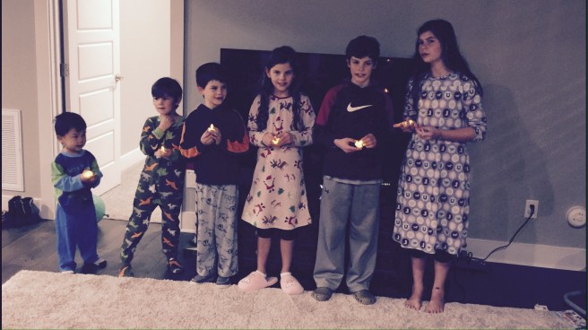 You see the year Calvin was born I began teaching the older children how to memorize Luke 2- the Christmas story.  It has been so beautiful hearing the children tell from memory what happened on that first Christmas night.   So…….the Christmas story isn’t exactly new for Calvin…..