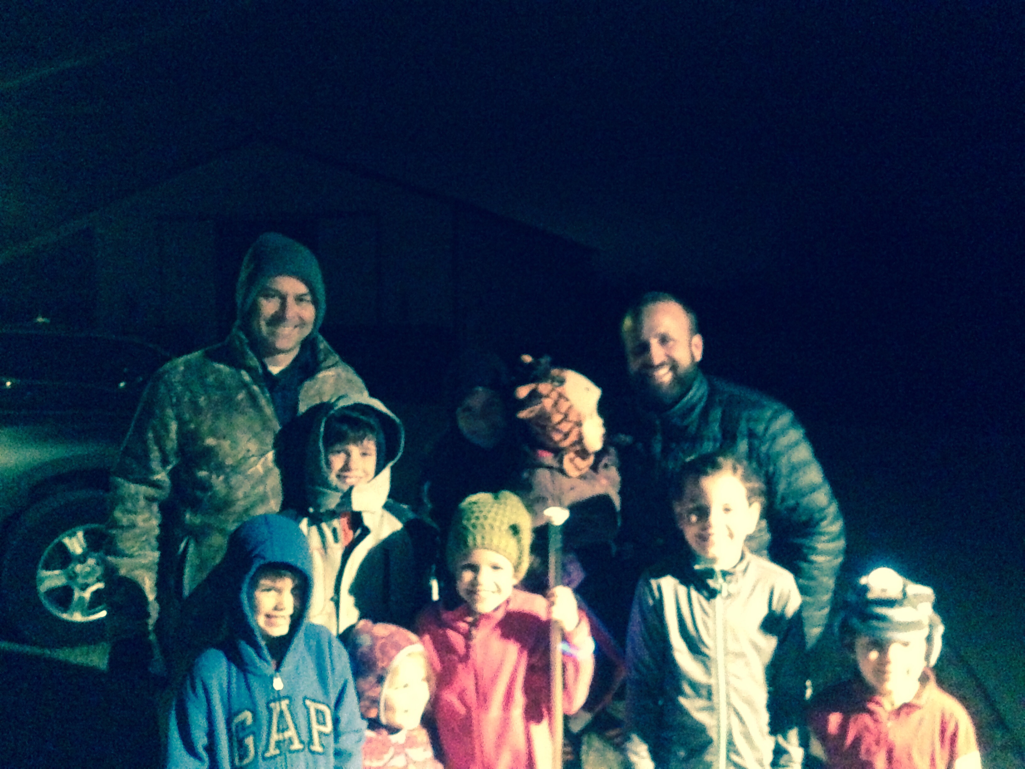 Here is the family with Caleb Curlin of Marmilu Farms just before we helped him catch chickens to put in their egg mobile one night!