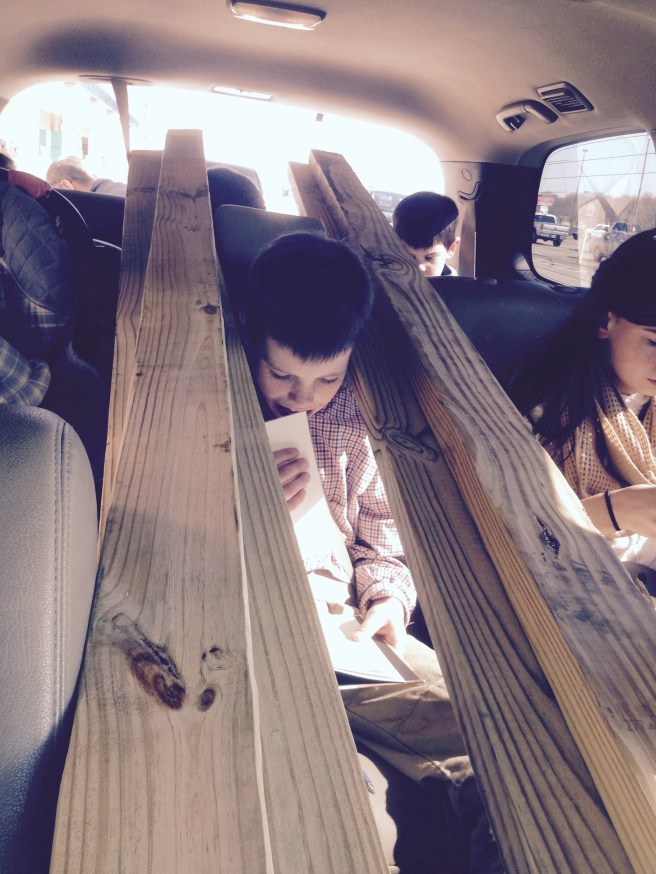 First trip to Lowe’s along with 6 little heads squeezed between the lovely lumber!