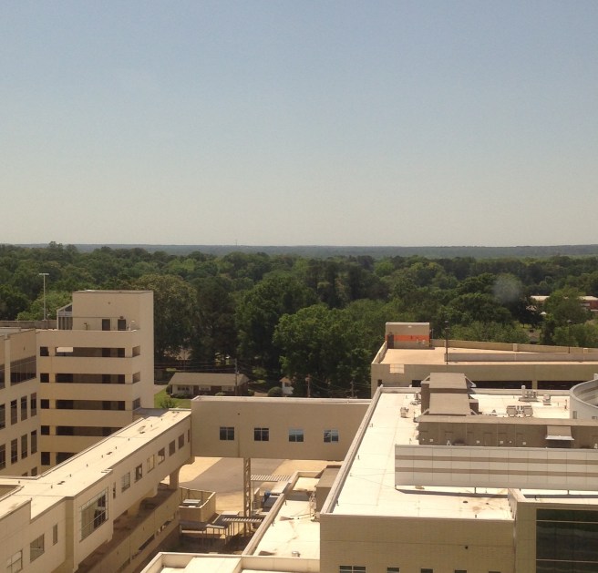 I am here, Saturday morning, on the 9th floor of the hospital- looking past the hospital roof tops and out over the lush green treetops of spring. Our city looks so tranquil. I imagine people are headed for a morning jog, or a Saturday morning doughnut “run,” going to garage sales perhaps, or maybe a trip to the farmer’s market.