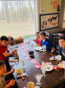 As I tucked the kids in bed on the night of the 13th, the younger ones began asking if I was about to “go get everything ready” for our Valentine morning. I reminded them that it wasn’t going to be the same this year. We had my grandmother’s china and silver to get out, a big pot of black bean soup to make along with bowls of fresh cilantro, lime wedges, and avocado to prepare. Not to mention the Valentine program the children still needed to rehearse for.