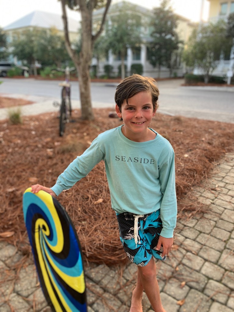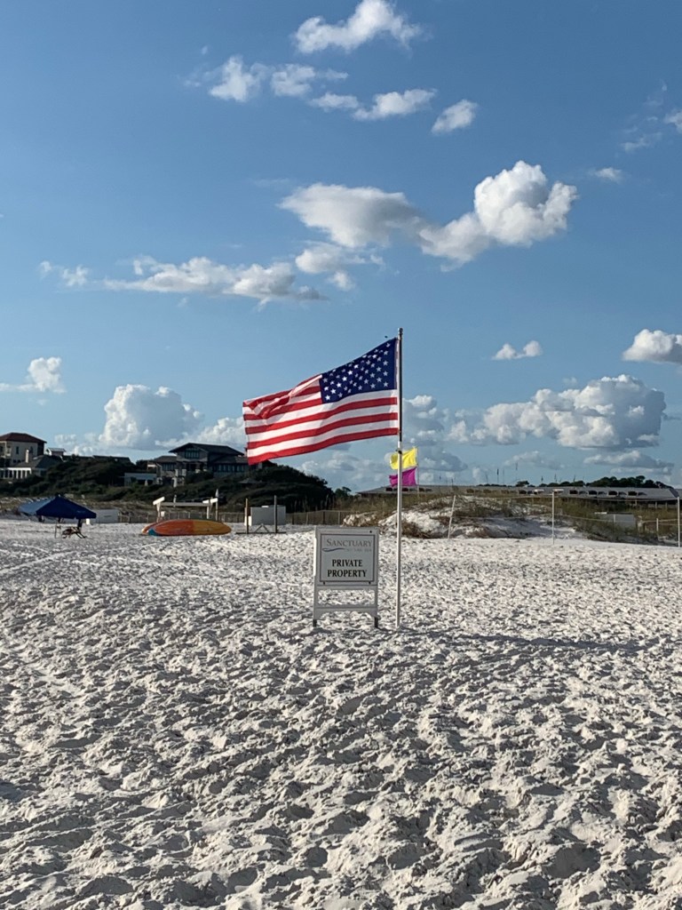 I was watching the children wade into the ocean while I helped Theodore catch a busy sand crab when I heard, “Excuse me, ma’am.” I looked and saw a young guy who appeared to work for the umbrella rental company. He continued, “I hope you are having a good day. I wanted to let you know about the beach situation. I am so sorry but you can’t sit here.” He explained about how the neighborhood that we were staying in had a different place on the beach that we were allowed to sit in…… “past the American flag.”